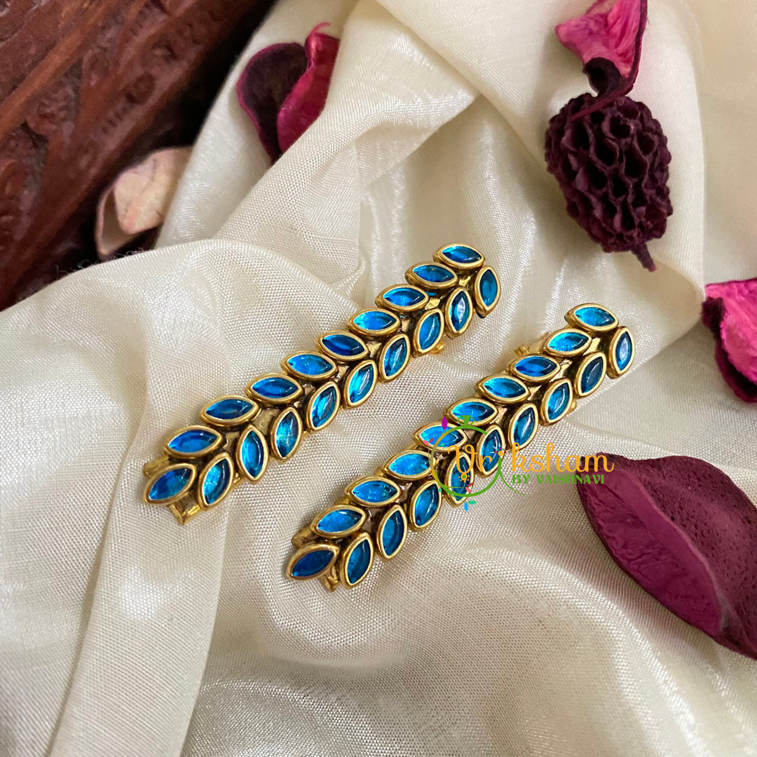 Kundan Hair Clip-Glossy Blue Leaf pattern Hair Clip- Pair of Kundan hair clips. Both adults and Kids wearable.
