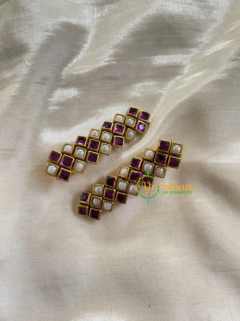 Kundan Hair Clip-gold-Purple- Dice Dots -gold Hair Clip- Pair of Kundan hair clips. Both adults and Kids wearable.