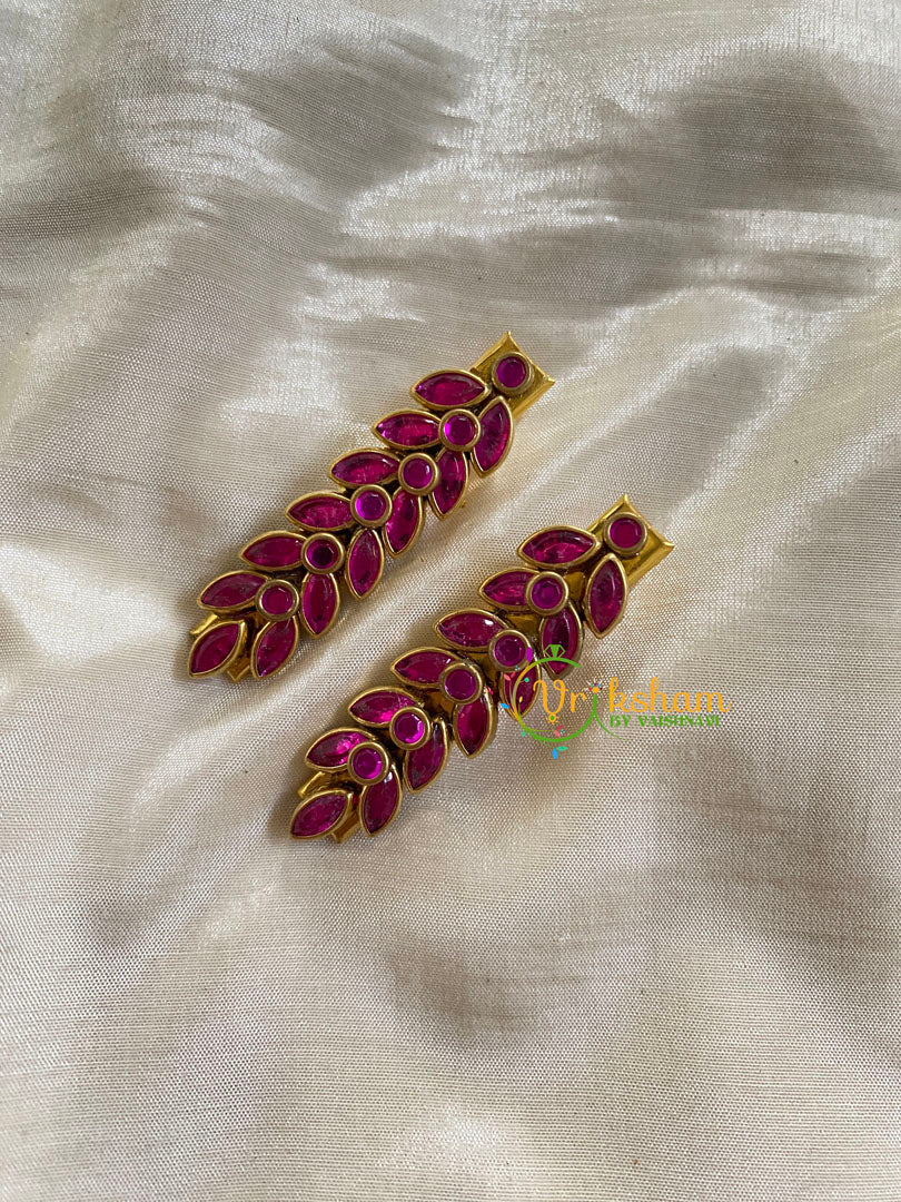 Kundan Hair Clip-gold-Pink-Leaf Hair Clip- Pair of Kundan hair clips. Both adults and Kids wearable.