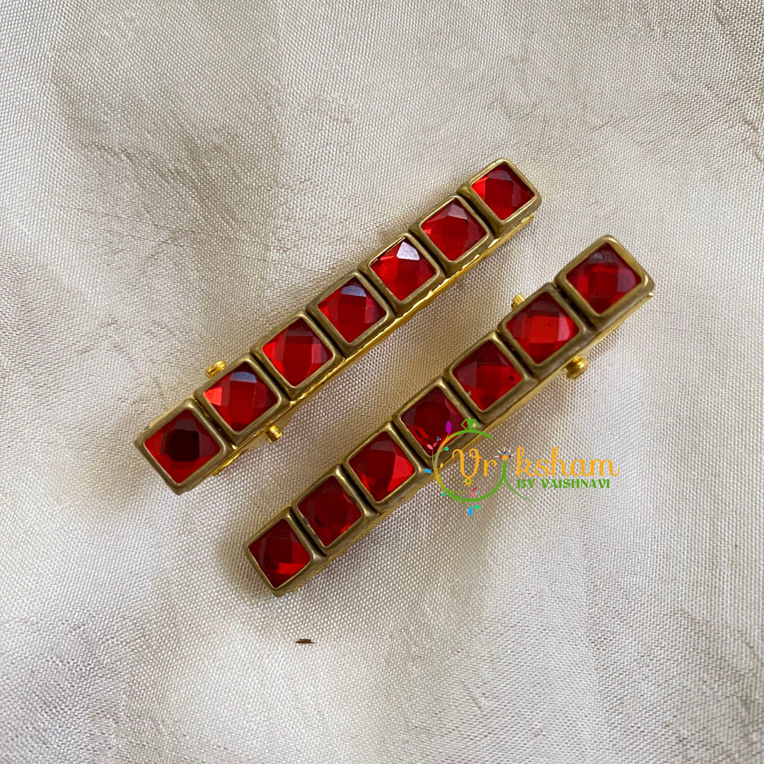 Kundan Hair Clip-gold Red-Squares Hair Clip- Pair of Kundan hair clips. Both adults and Kids wearable.