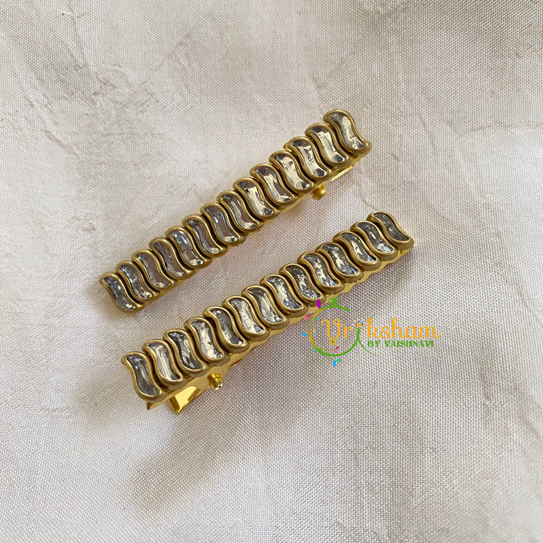 Kundan Hair Clip-gold-White Curves Hair Clip- Pair of Kundan hair clips. Both adults and Kids wearable.