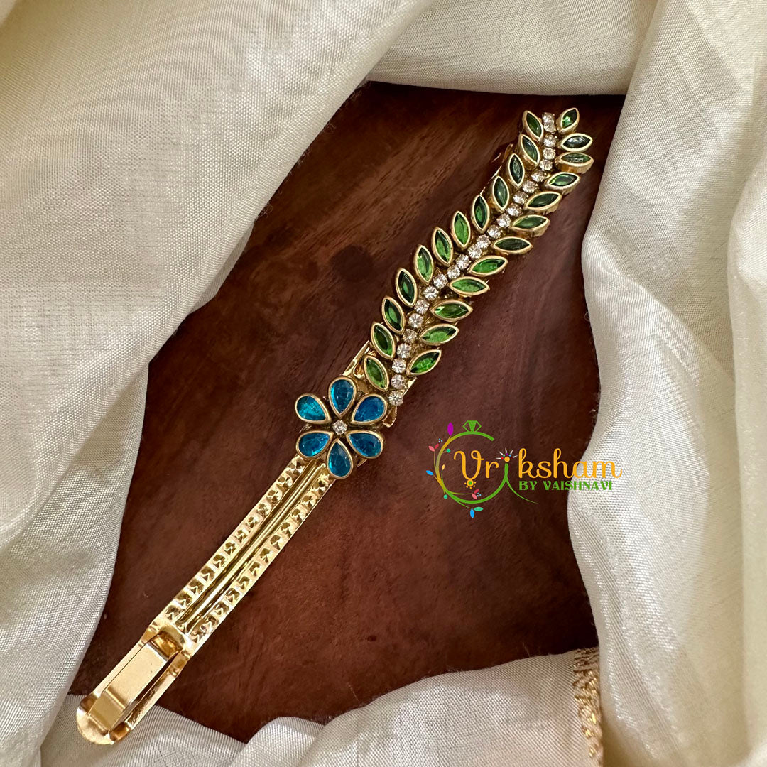 Kundan Hair Clip- Blue Green- Floral Leaves Hair Clip- Pair of Kundan hair clips. Both adults and Kids wearable.