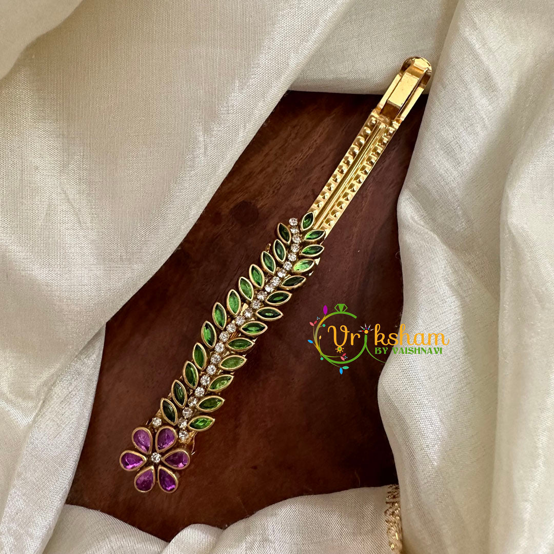 Kundan Hair Clip -Purple Green-Floral Leaves Hair Clip- Pair of Kundan hair clips. Both adults and Kids wearable.