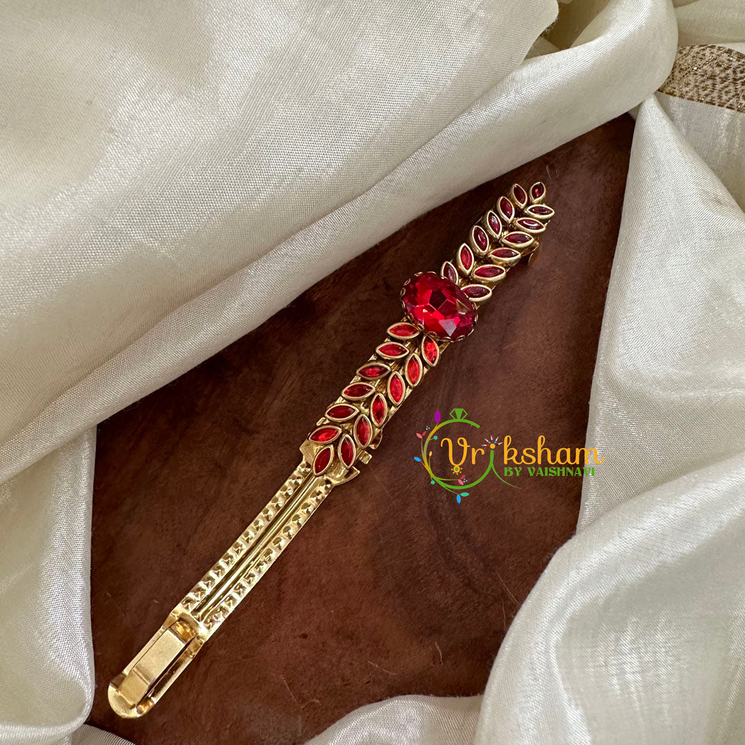 Kundan Hair Clip- Red Leaves Hair Clip- Pair of Kundan hair clips. Both adults and Kids wearable.