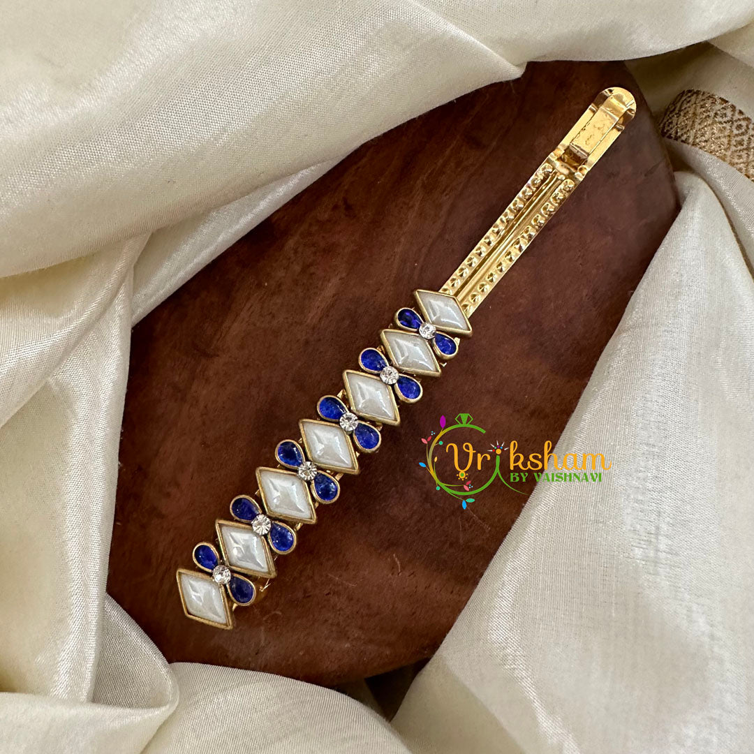 Kundan Hair Clip -Dark Blue Matt White -Dice and Dot -H474
