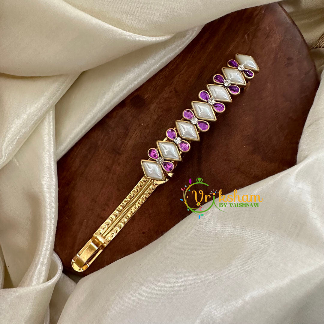 Kundan Hair Clip -White Purple-Dice and Dot -H476
