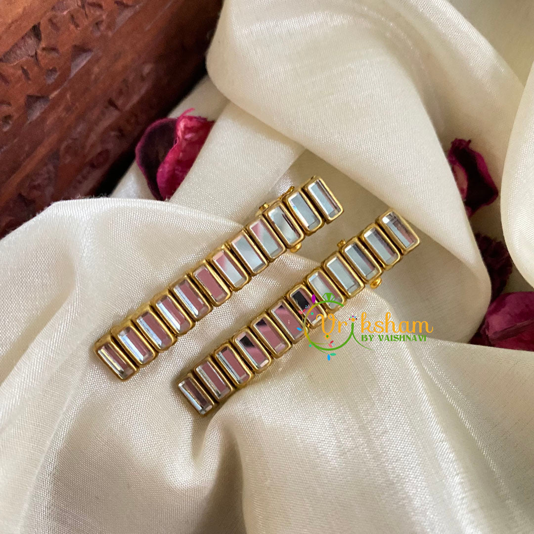 Kundan Hair Clip- White-Line Hair Clip- Pair of Kundan hair clips. Both adults and Kids wearable.