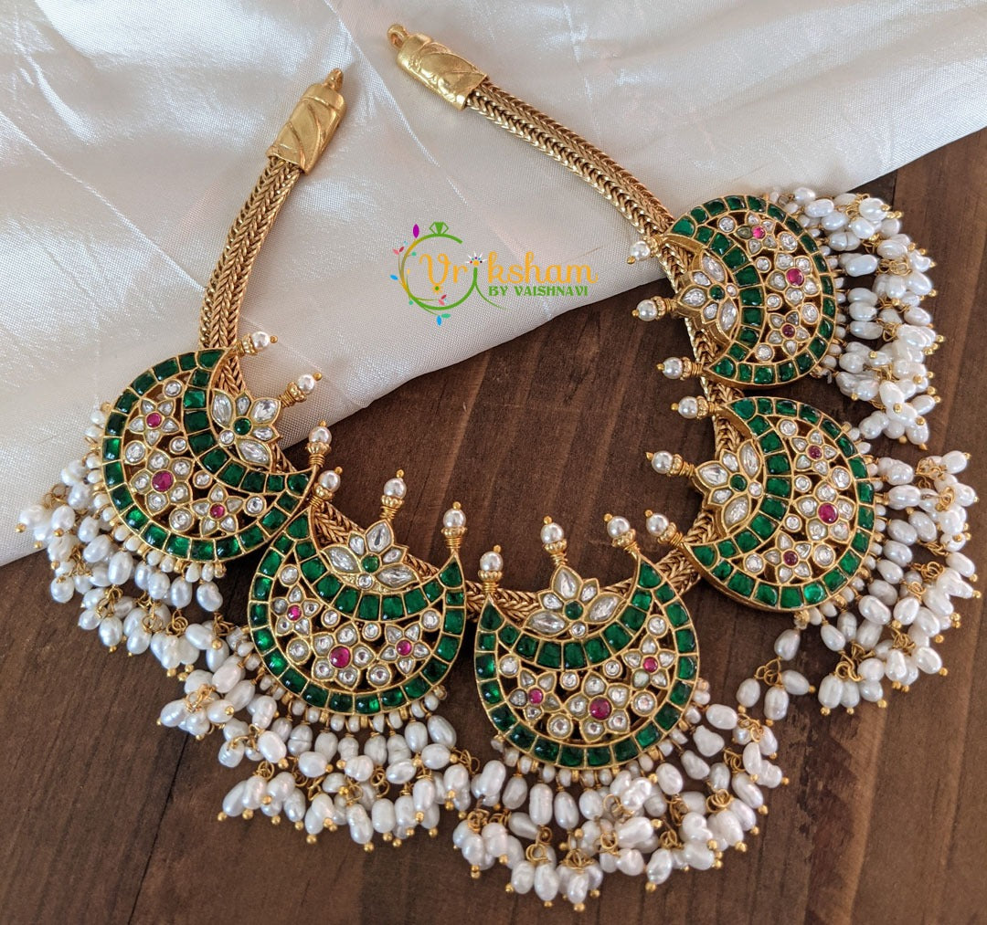 Exquisite Kundan Jadau Chandbali Neckpiece – Jadau work kundan Short Neckpiece with Pearl finish -one of our highest quality jewelry hand made by our artisans.