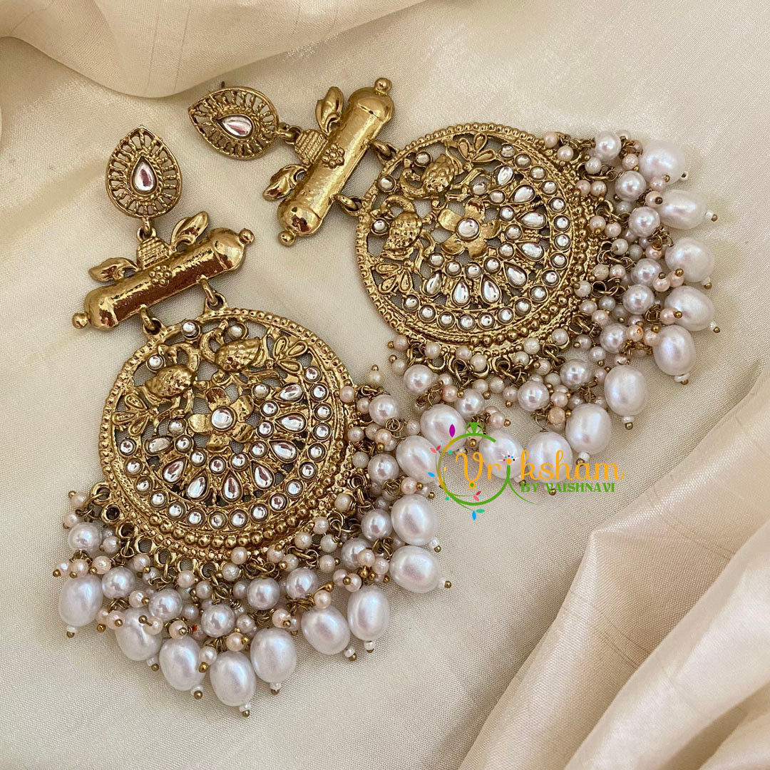 White Kundan Meenakari Danglers with centre stone and white kundan stone studded earrings; pearl and bead finish.