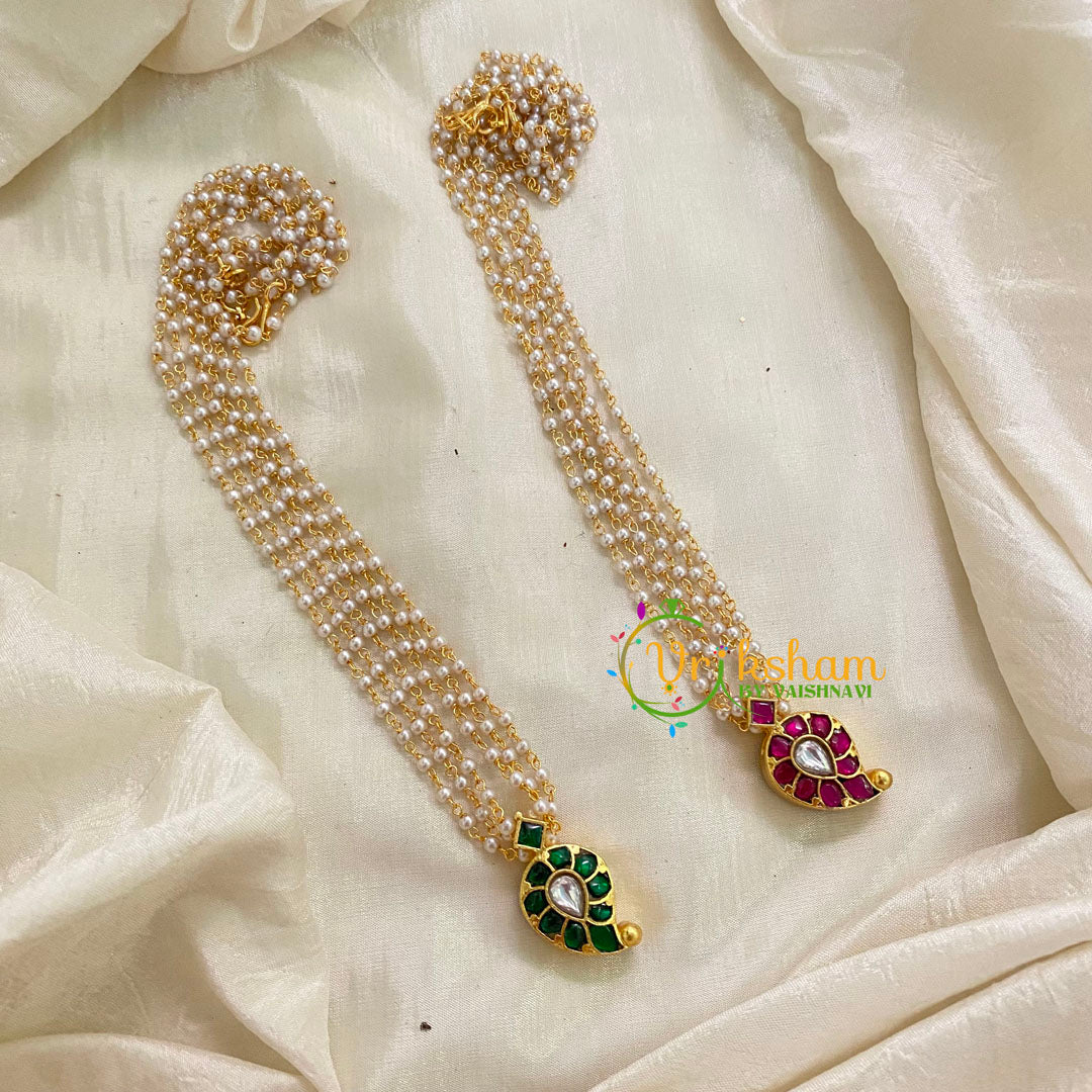 Jadau Kundan Paisley Pendant Pearl Malai -Reversible Pendant - jadau Kundan Pendant chain is one of our highest quality jewelry ; handmade by artisans; this boasts the design and quality of a real silver haram but at an afforable price.