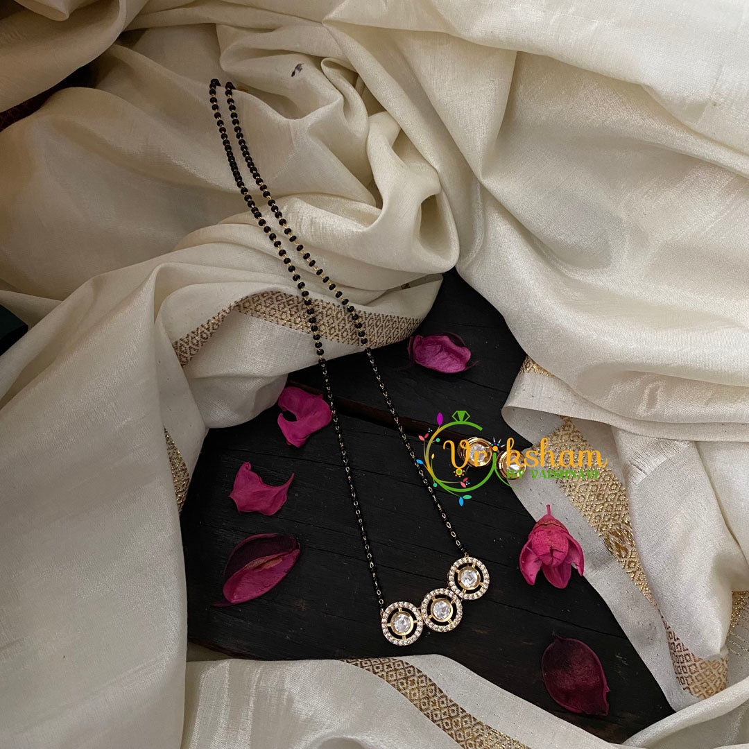 AD Stone Kundan Pendant Mangalsutra Chain -3 stone Kundan pendant;NECKPIECE ONLY. Gold Look alike polish.