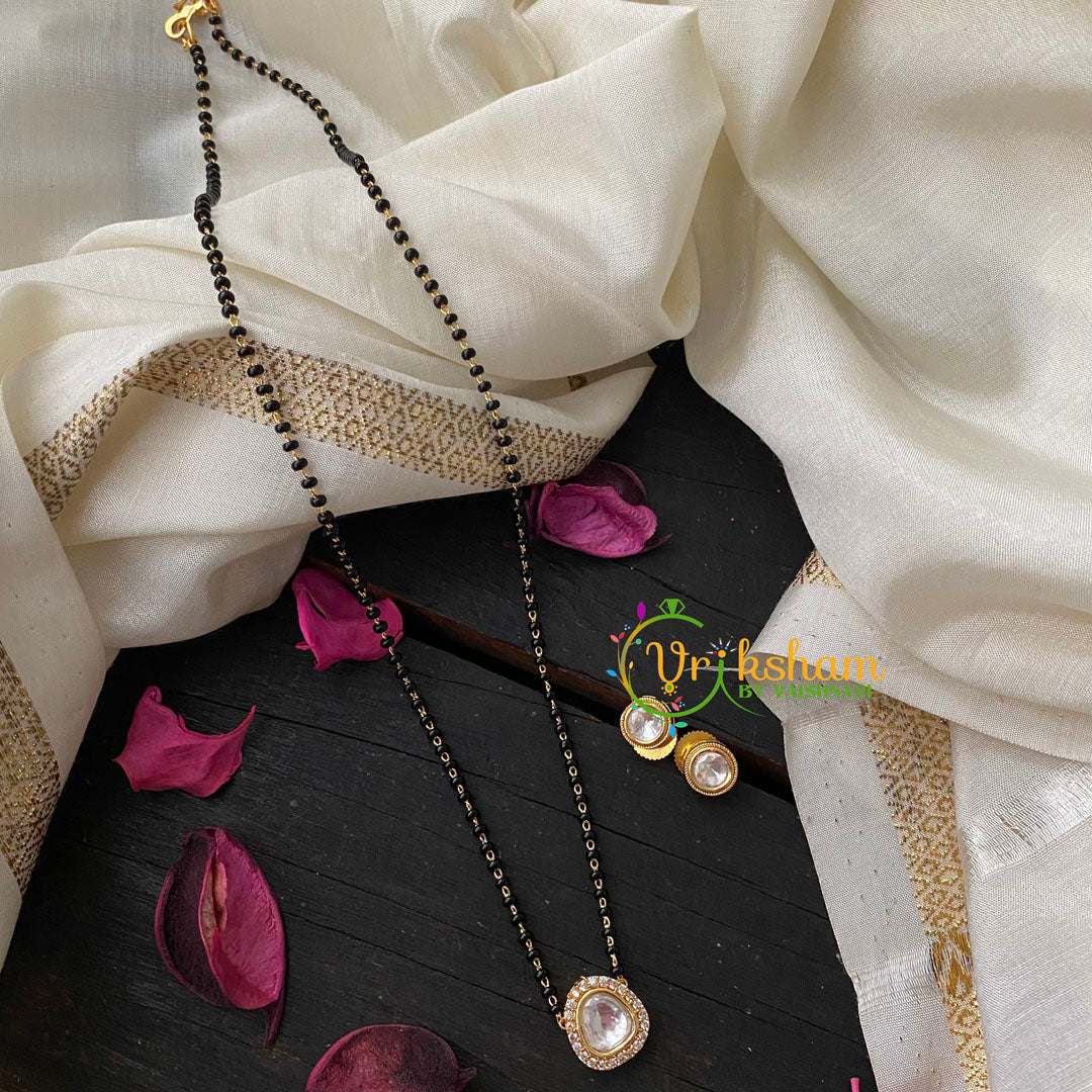 AD Stone Kundan Pendant Mangalsutra Chain-Oblong -Kundan pendant; comes with matching ear studs. Gold Look alike polish.
