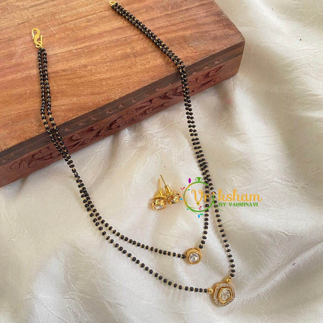 AD Stone Kundan Pendant Mangalsutra Chain-Pentagon -Kundan pendant; comes with matching ear studs. Gold Look alike polish. 2 layered