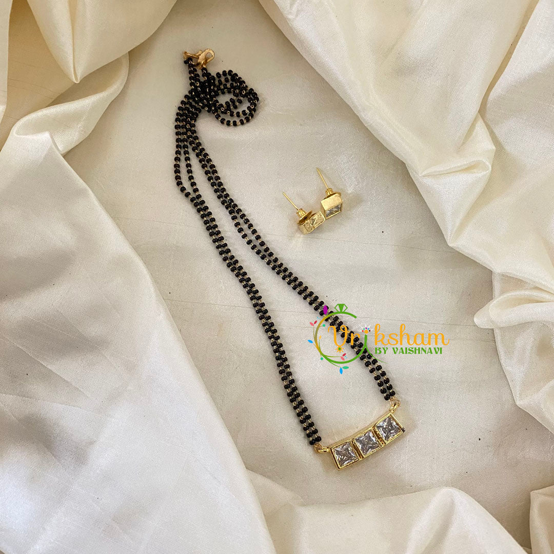 AD Stone Kundan Pendant Mangalsutra Chain -Single Square Kundan pendant; comes with a stud. Gold Look alike polish.