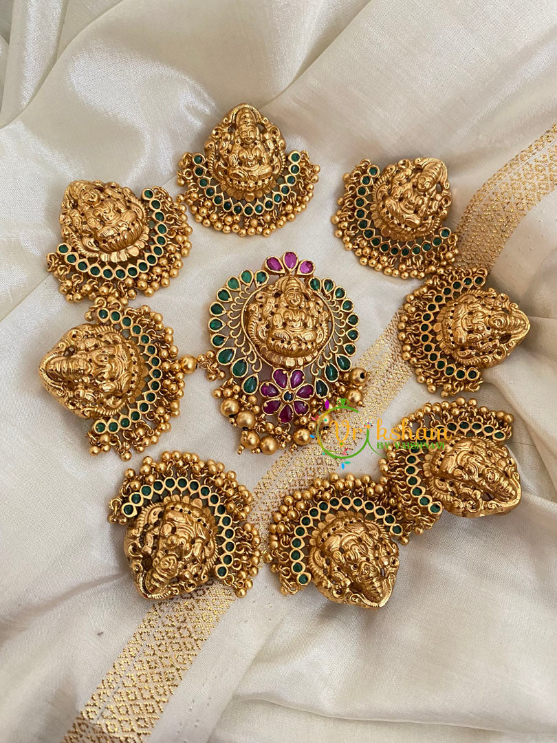 AD stone Lakshmi Billai -Temple Jada Billai -9 pieces of same size temple billai – Lakshmi with ad stones, comes together as 9 pieces only. Pearl Finish.