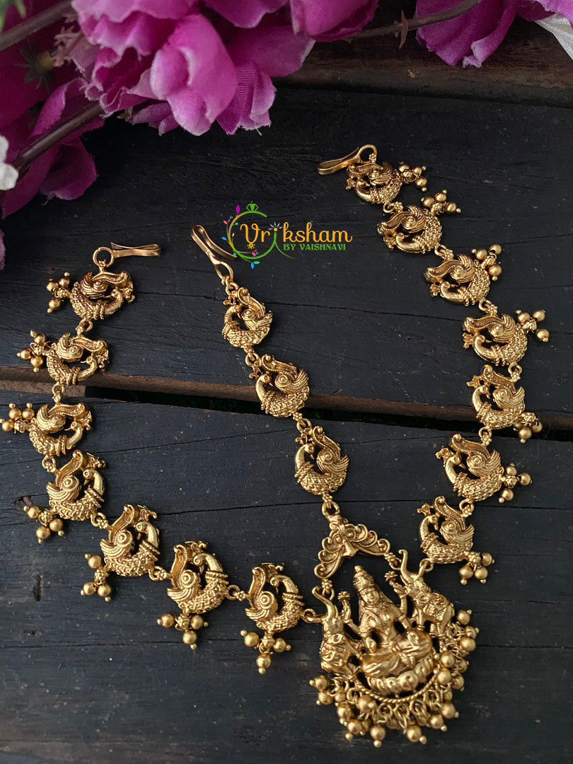 Gold Look Alike Lakshmi Bridal Maang Tikka -Nethichuti -Two side PEACOCK patterned, Centre LAKSHMI Pendant premium quality Maang tikka/Nethichuti .
