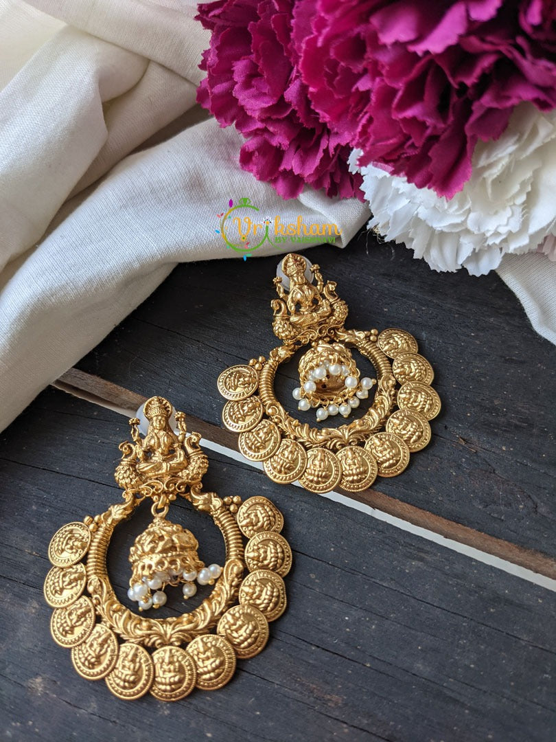 Lakshmi Coin Chandbali earring – Lakshmi Studs with tiny centre jhumkas with pearl finish.