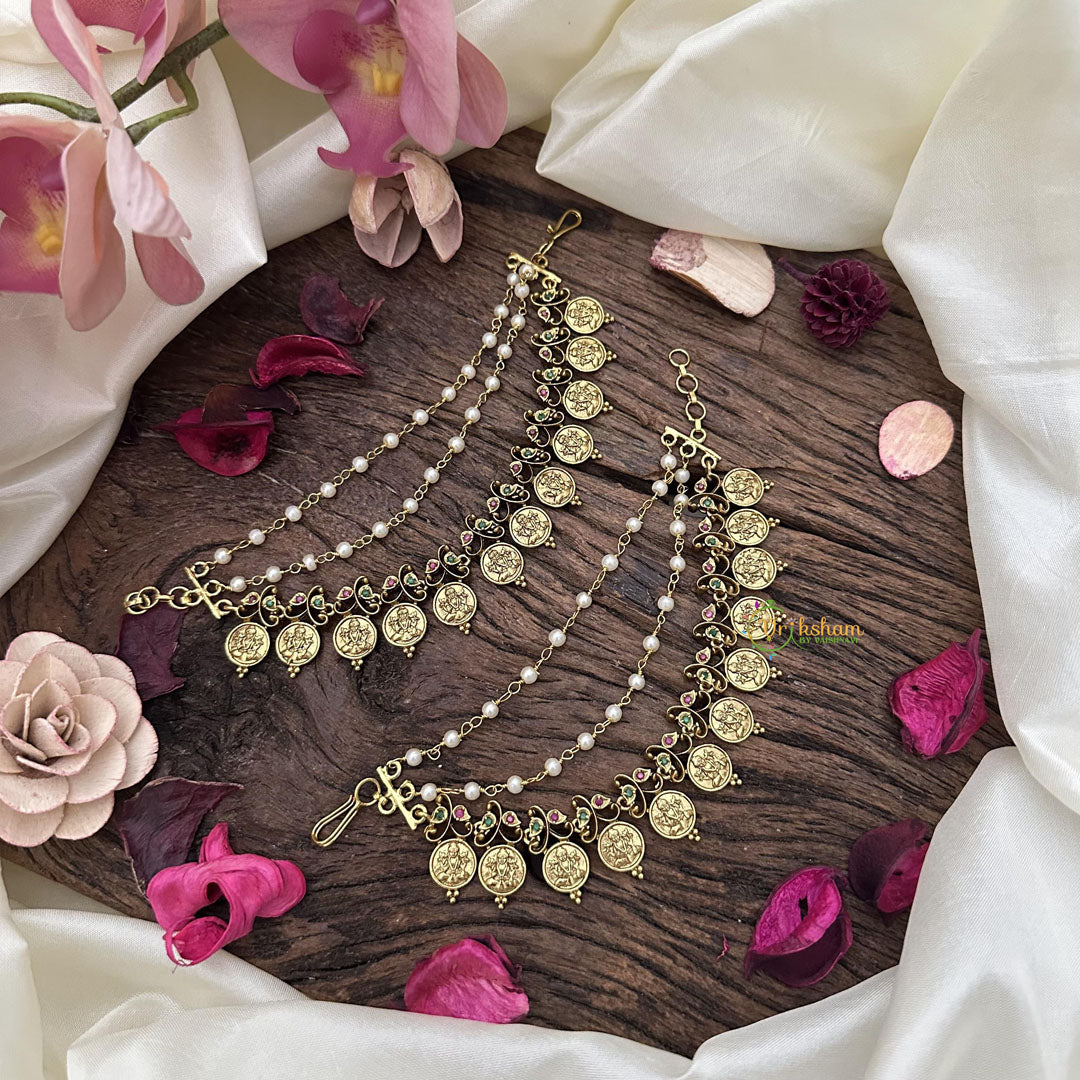 This exquisite Lakshmi Coin Maatil necklace features a stunning 2 layered pearl design. With intricate craftsmanship and a nod to traditional Indian jewelry, this necklace radiates a sense of opulence and elegance. Adorn yourself with this luxurious piece and embrace the timeless beauty of Indian culture.