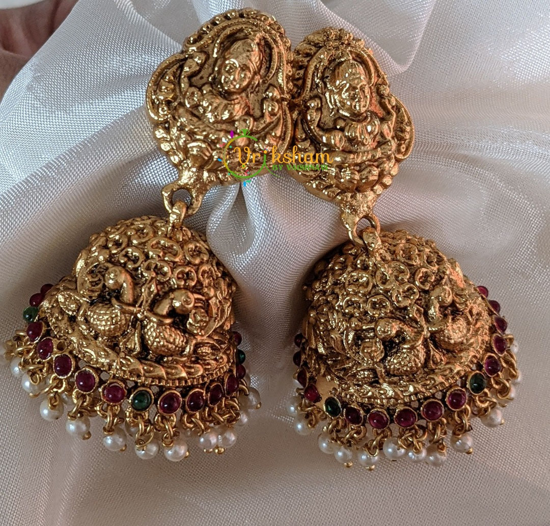 Lakshmi Jhumkas -Temple jhumkas -Premium jhumka piece with lakshmi studs and peacock jhumka with pearl finish.