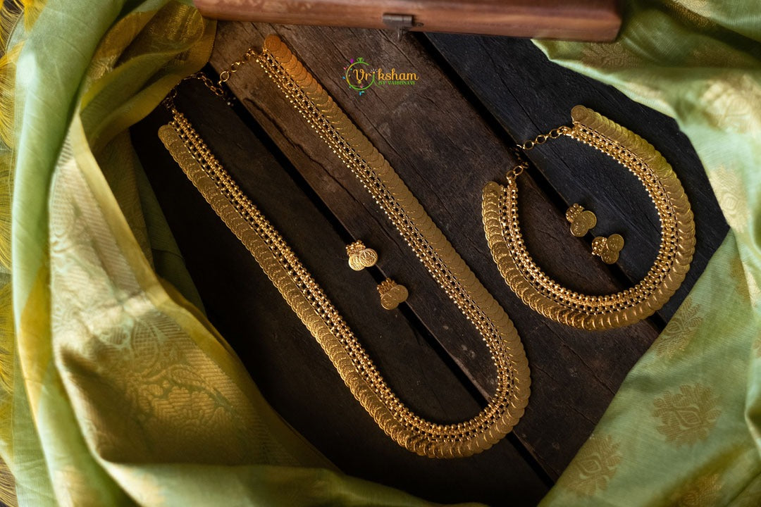 Lakshmi Kaasumala Haram or Choker -Temple Neckpiece -Long and Short Neckpieces, with matching studs ; Can be bought separately as individual pieces.