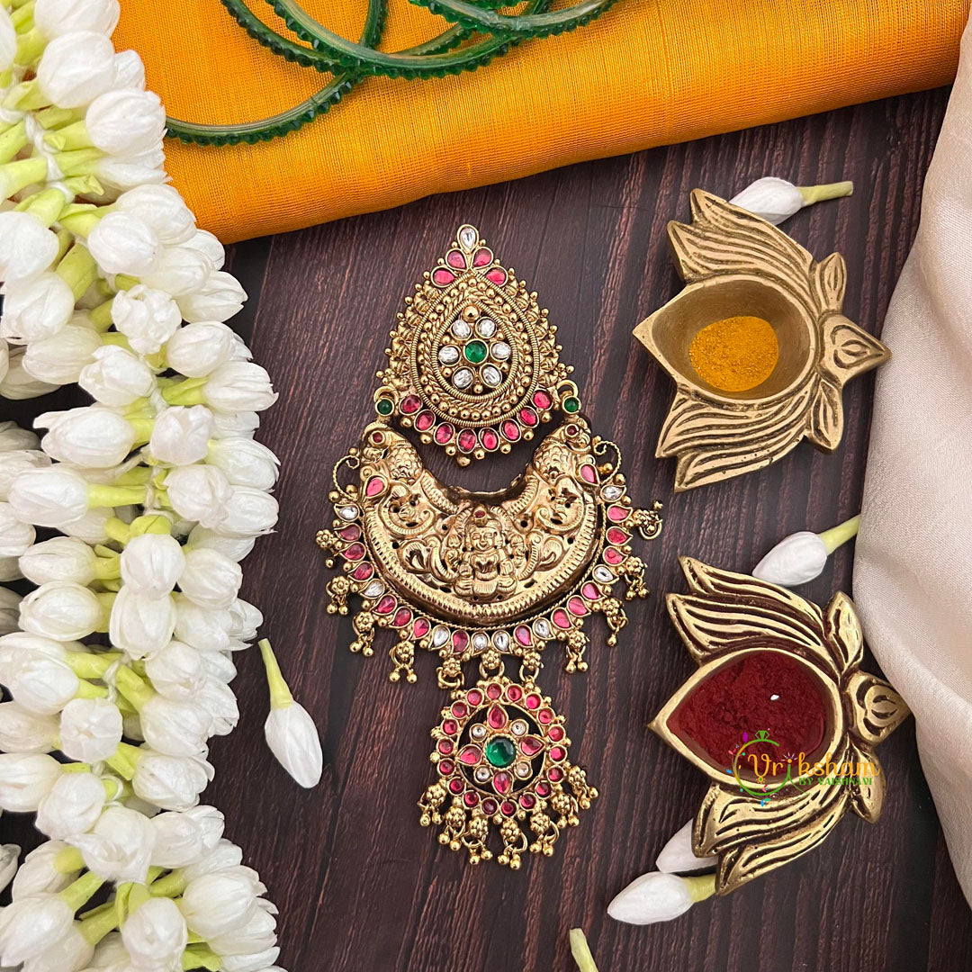 Embrace timeless elegance with this stunning Lakshmi Kemp Chandbali featuring exquisite gold beads and intricate detailing. Handcrafted with precision, this 1 gram gold-plated piece combines traditional artistry with divine beauty, perfect for weddings, religious ceremonies, and festive celebrations. Crafted from copper, brass, and semi-precious stones with authentic one gram gold plating, each chandbali radiates warmth and sophistication. The delicate Nakshi-style work creates a captivating focal point for your bridal or ceremonial ensemble. Every piece is individually handmade to ensure authenticity and superior quality. The luxurious gold-plated finish maintains traditional aesthetics while adding a contemporary touch. Material: Copper, brass, one gram gold plating, semi-precious stones