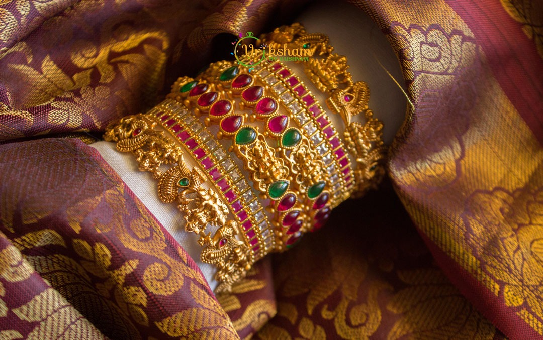 Center Golden Lakshmi Matt big kemp Bangles in premium quality and a very intricate style. Please measure your size in our bangles size chart before placing an order