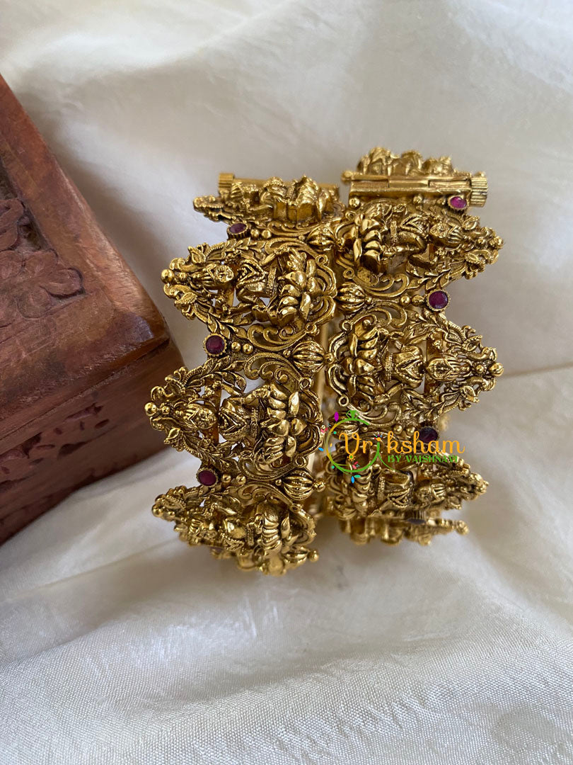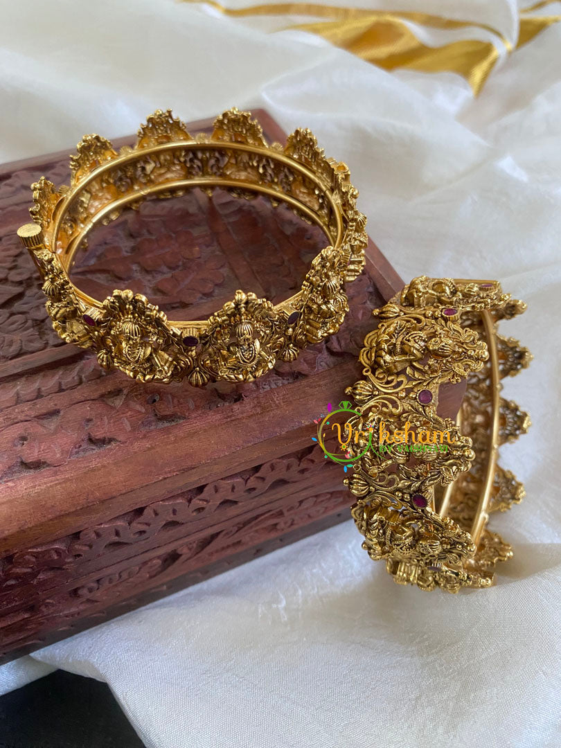 Lakshmi Openable Screw Type Bangle -Red kemp studded Gold Look Alike Bangles with temple look and polish. Comes as a pair only.