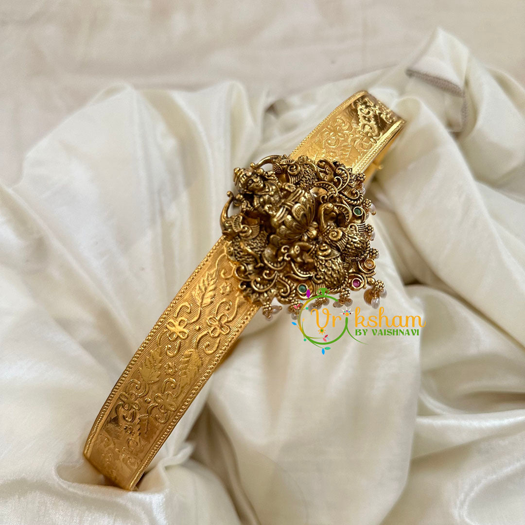 AD Stone Antique Lakshmi Pendant Plain Hipbelt in center; ad stone and semi precious studded hipbelt.