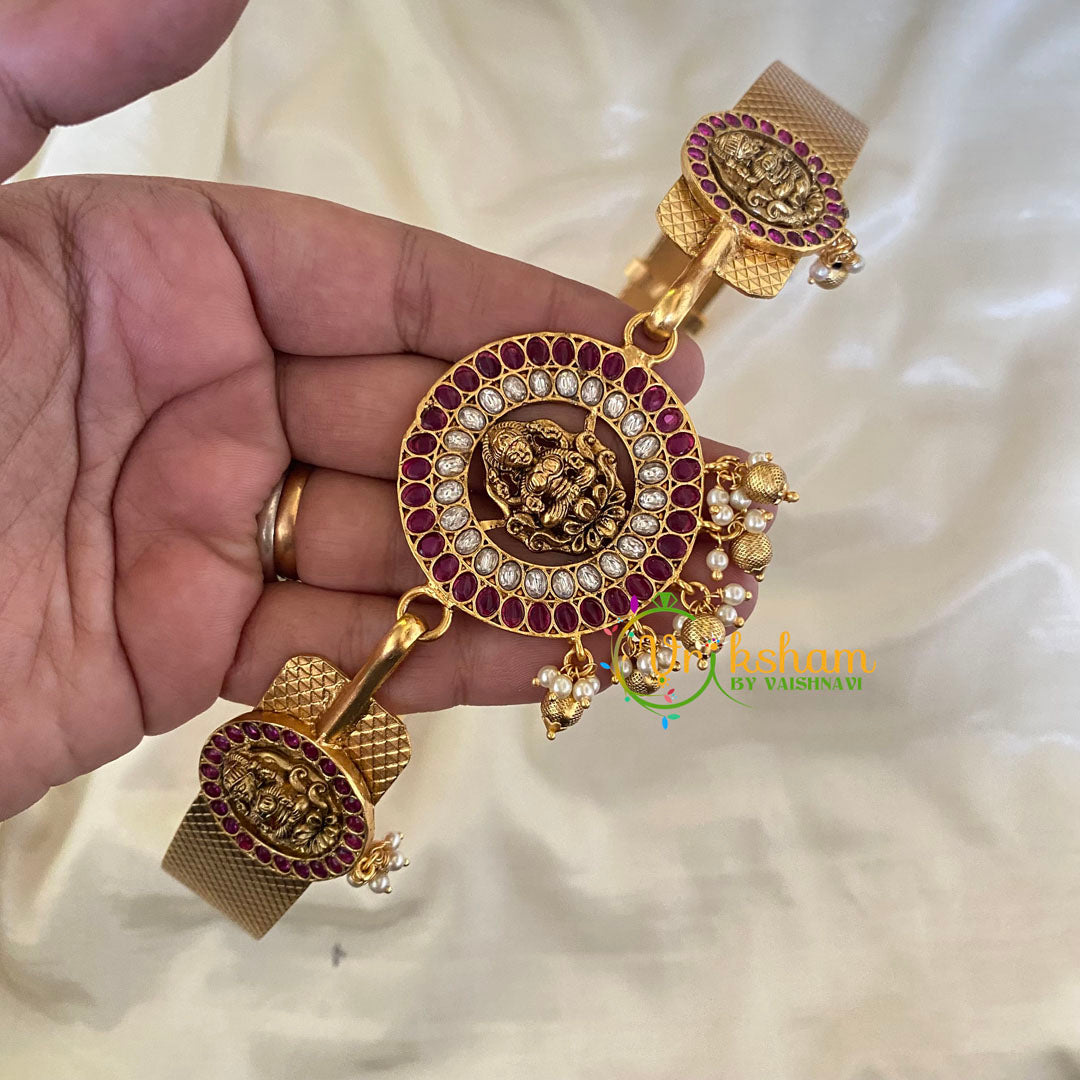 AD Stone Lakshmi Pendant Plain Hipbelt-Gold Bead pearl finish– Gold Look alike Hipbelt with white and red imitation stone and embossed plain hipbelt.