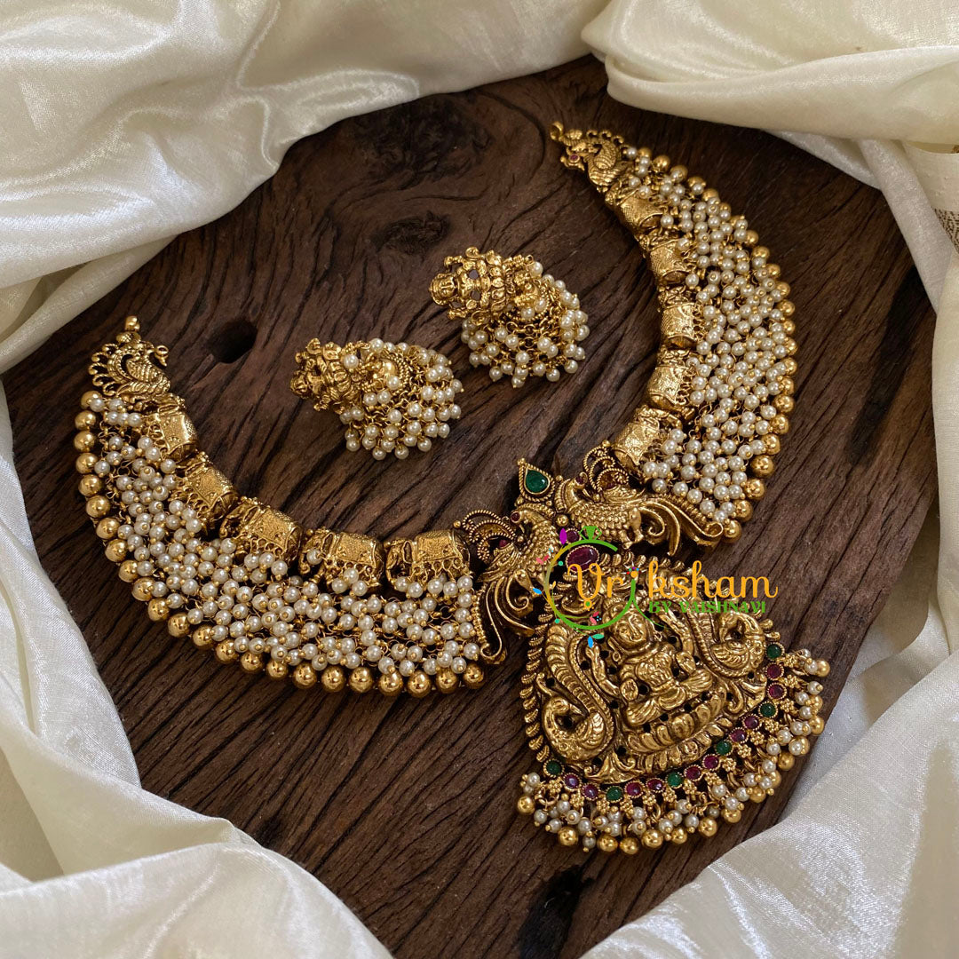 Cluster Pearl Lakshmi Pendant Short Neckpiece- premium quality polish ;comes with matching earrings.