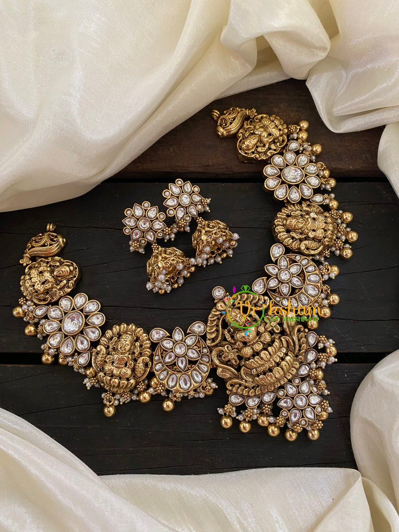 For more such pieces visit, https://vrikshamindia.com/product-category/golden-jewellery/short-neckpieces/