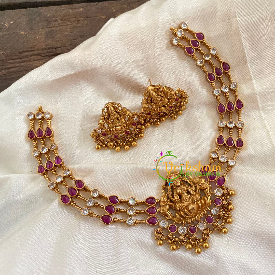 Premium Lakshmi Pendant Short Neckpiece- premium quality polish and imitation stones neckpiece, comes with matching earrings.