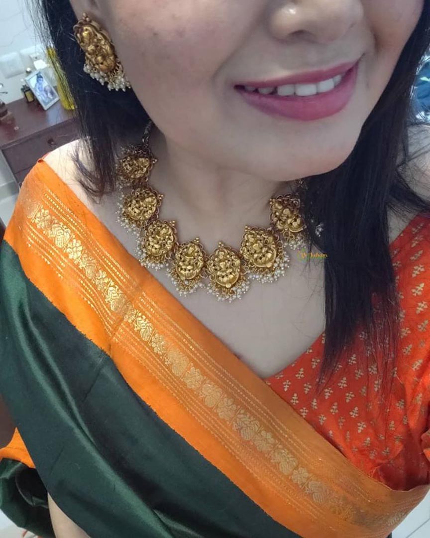 This is one of our most sold Neckpieces which has a very beautiful lakshmi style arrangement