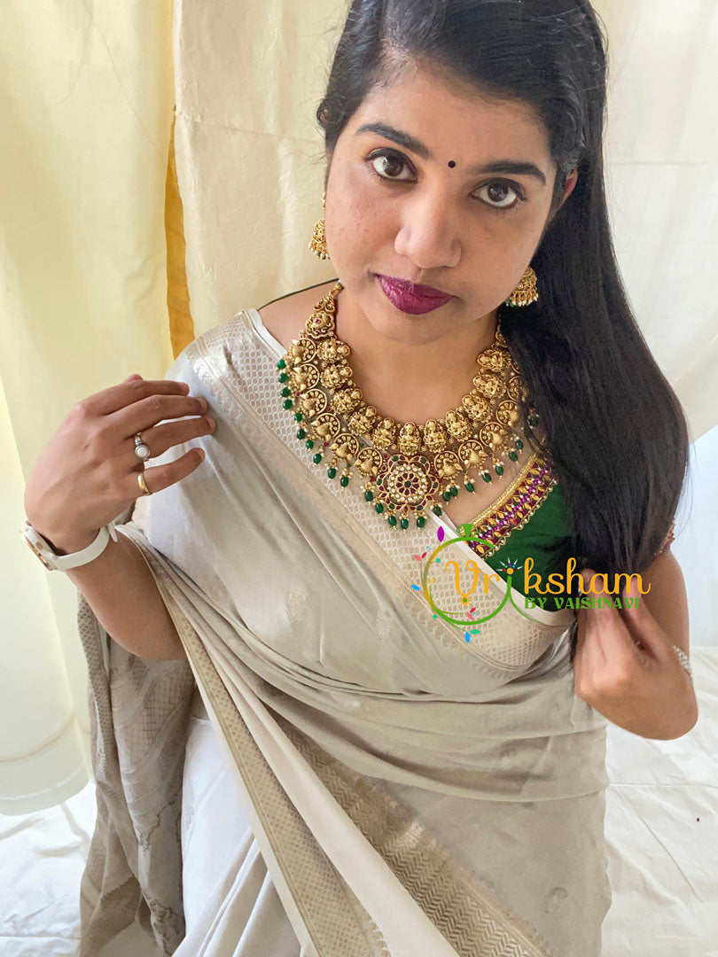 For more such pieces visit, https://vrikshamindia.com/product-category/golden-jewellery/short-neckpieces/