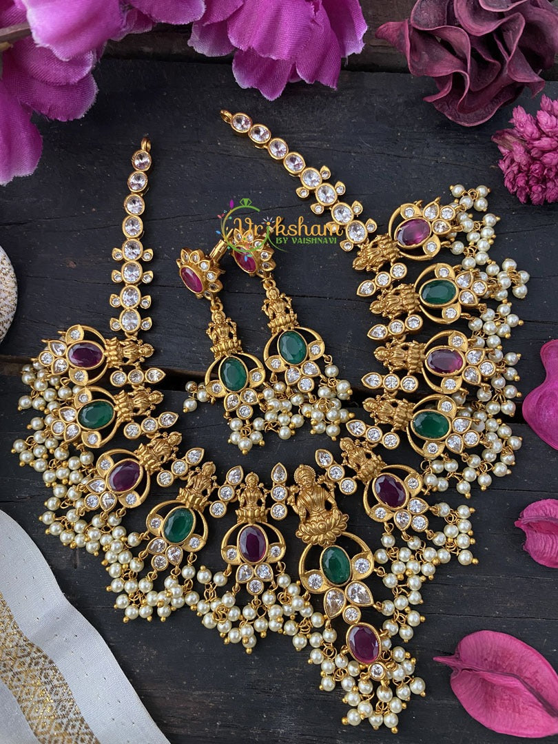 For similar neckpieces kind visit, https://vrikshamindia.com/product-category/golden-jewellery/short-neckpieces/