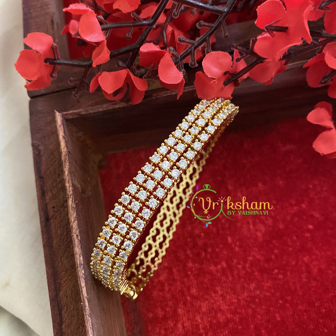 Gold Layered American Diamond Bracelet- dotted line- solid block Openable kada type bracelet.
