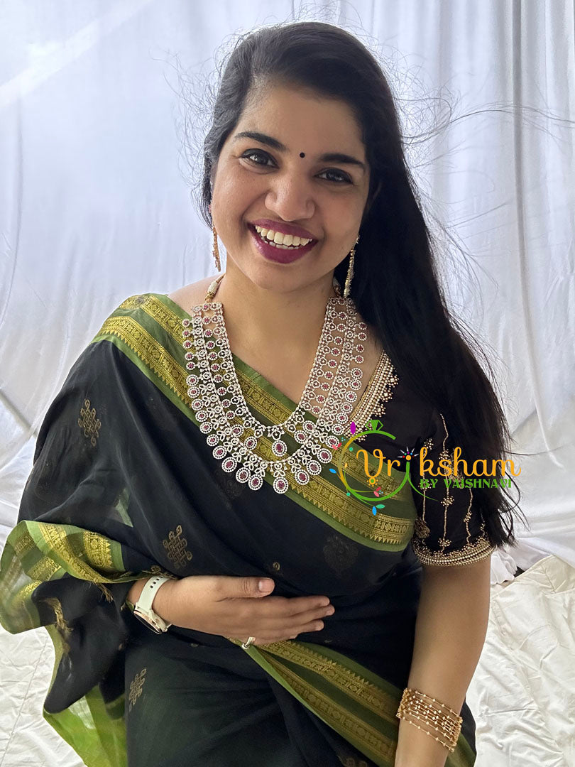 For more such neckpieces visit, https://vrikshamindia.com/product-category/golden-jewellery/american-diamond/
