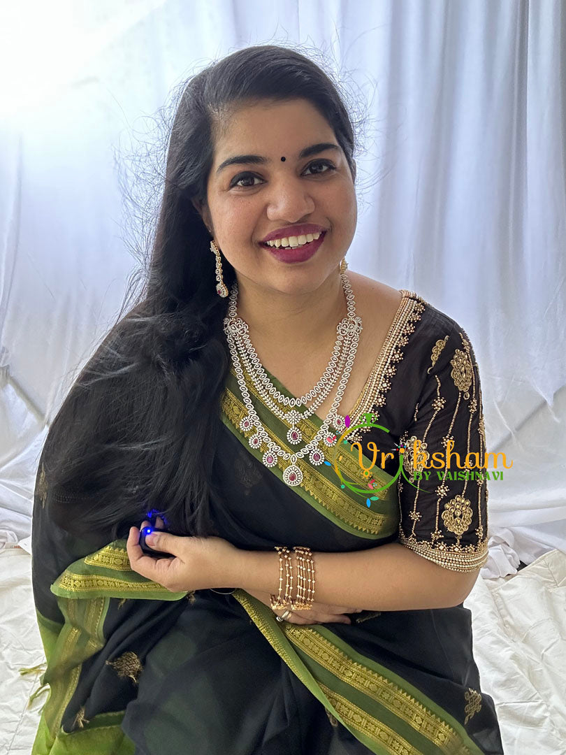For more such neckpieces visit, https://vrikshamindia.com/product-category/golden-jewellery/american-diamond/