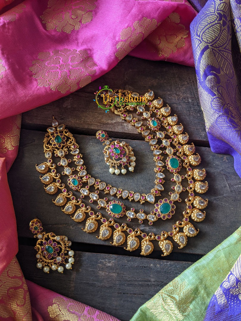 Layered CZ Stone Neckpiece is a Premium Quality Gold look alike polish neckpiece with earrings and back rope.