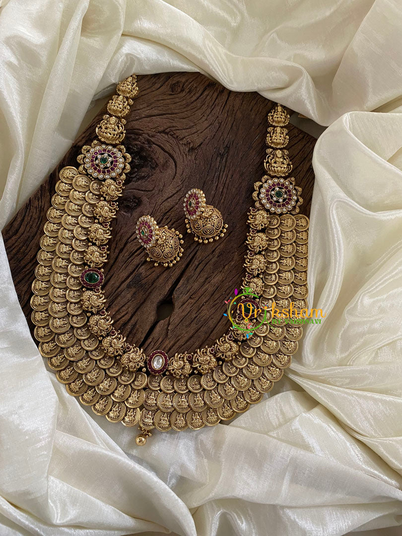 Antique Layered Kaasumala Lakshmi Haram with Mugappu-Nagas Neckpiece -Quality Matt Antique look gold finish.