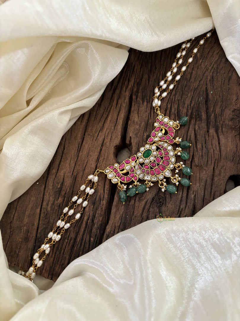 MAKE MATERIAL – This Layered Pearl Jadau Kundan High Neck Choker piece of jewelry is made of copper and brass and has precious jadau kundan stones.