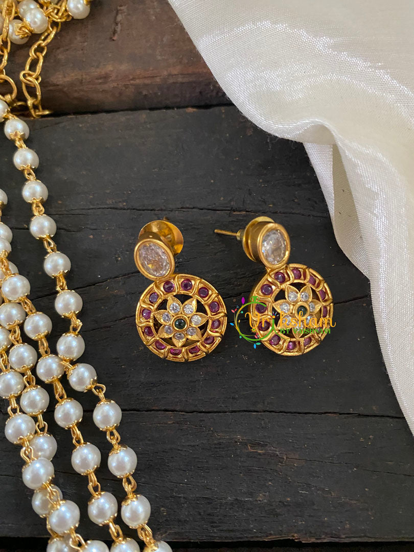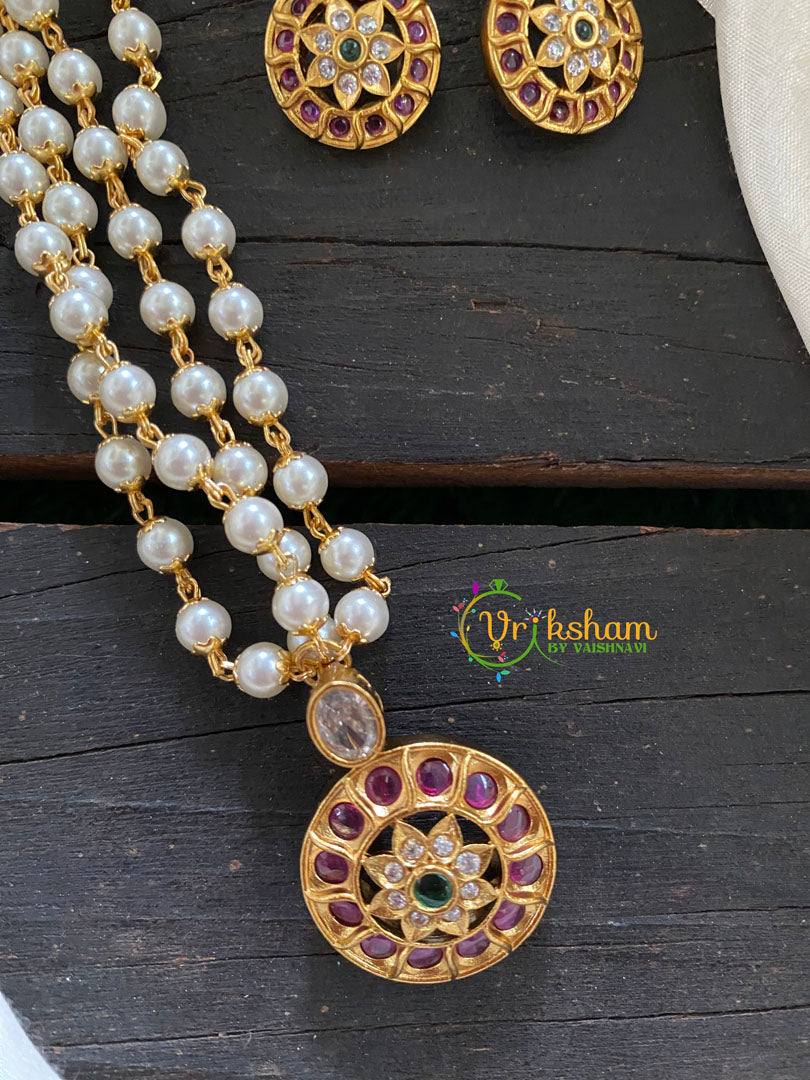 Layered Pearl Pendant Chain -Chakra Pendant - 2 layer round pearl chain with centre pendant - gold look alike polish.