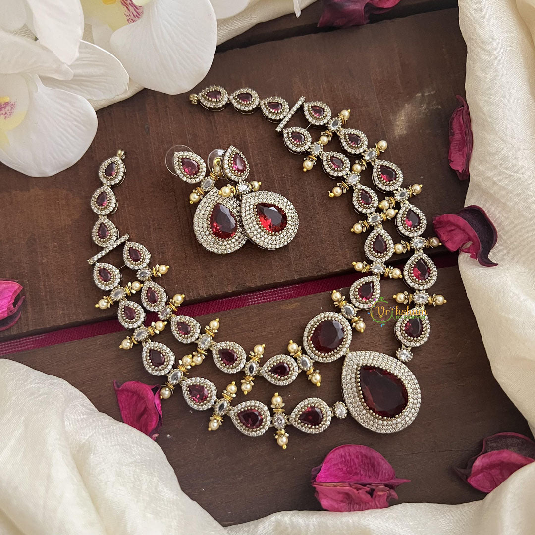 Layered Red Victorian Diamond Neckpiece-Tilak-VV1833