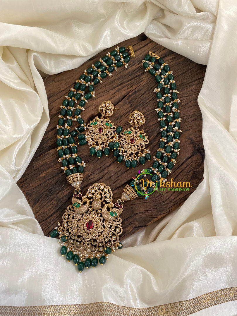 Bead Layered Victorian Diamond Neckpiece - semi precious stone studded neckpiece ; comes with matching earrings.