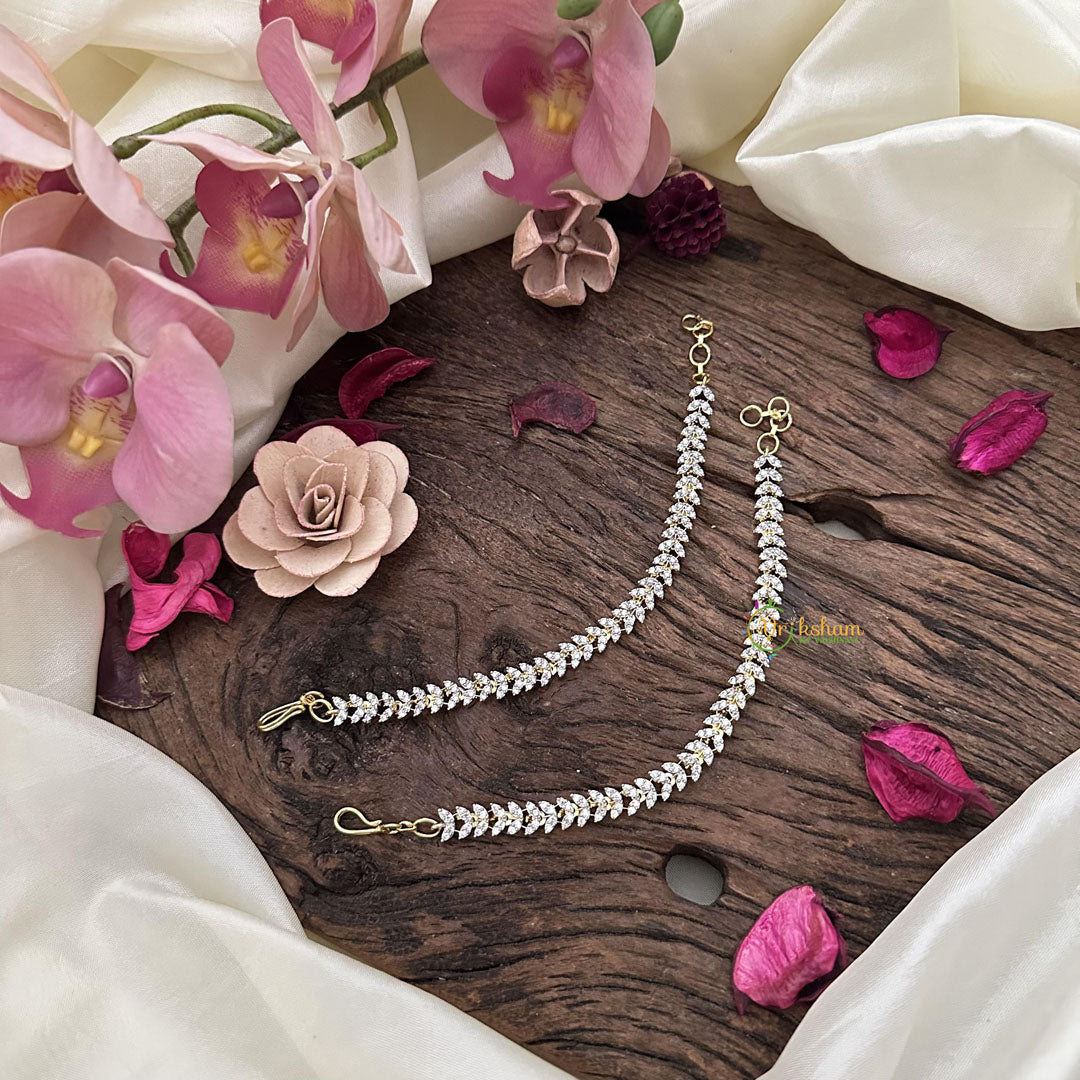 Indulge in the luxury of our Leaf Shape AD Stone Maatil-Earchain. With intricate detailing and exquisite craftsmanship, this piece exudes elegance and sophistication. Crafted with premium materials, it will make a statement at any occasion. Elevate your style with this exclusive designer accessory.