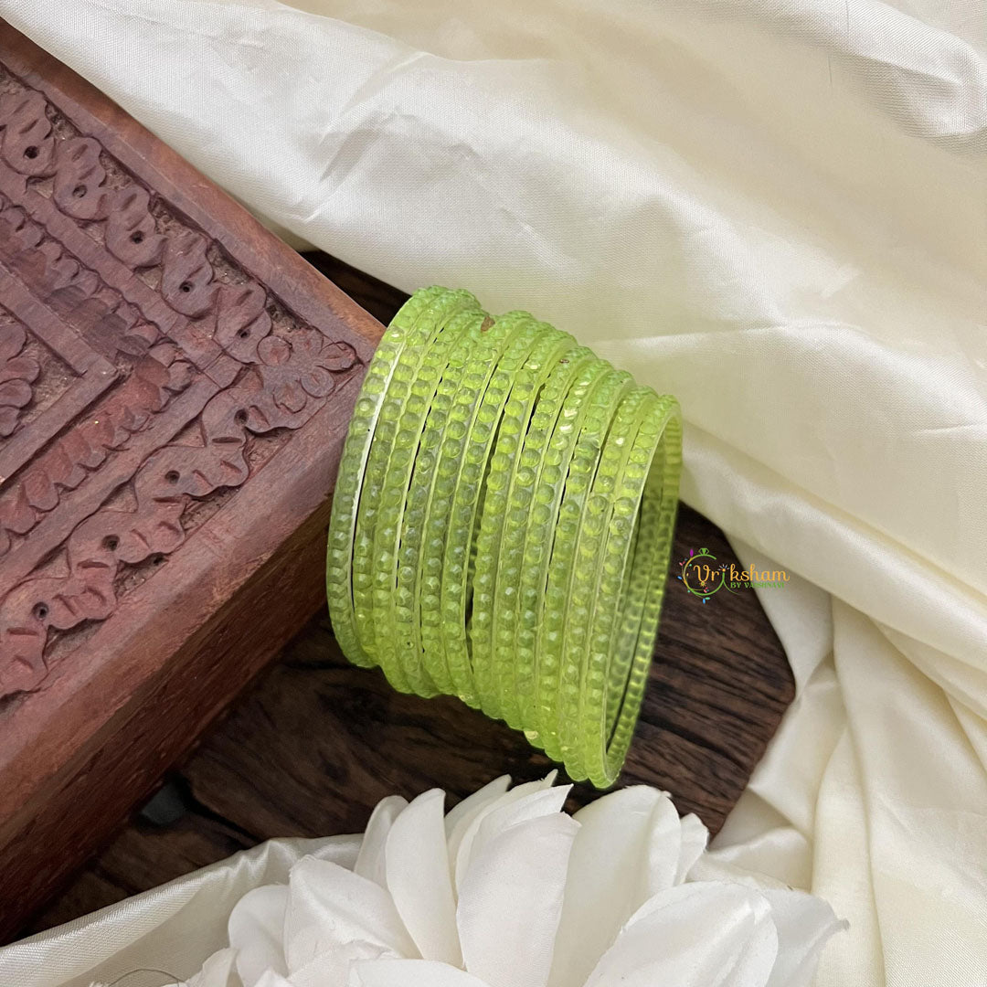 Elevate your style with the JS Thin Glass Bangle set. This set of 12 bangles features delicate and intricately designed glass bangles that will add a touch of sophistication to any outfit. Perfect for any occasion, this bangle set is a must-have for any fashion-forward individual looking to add a luxurious touch to their wardrobe.