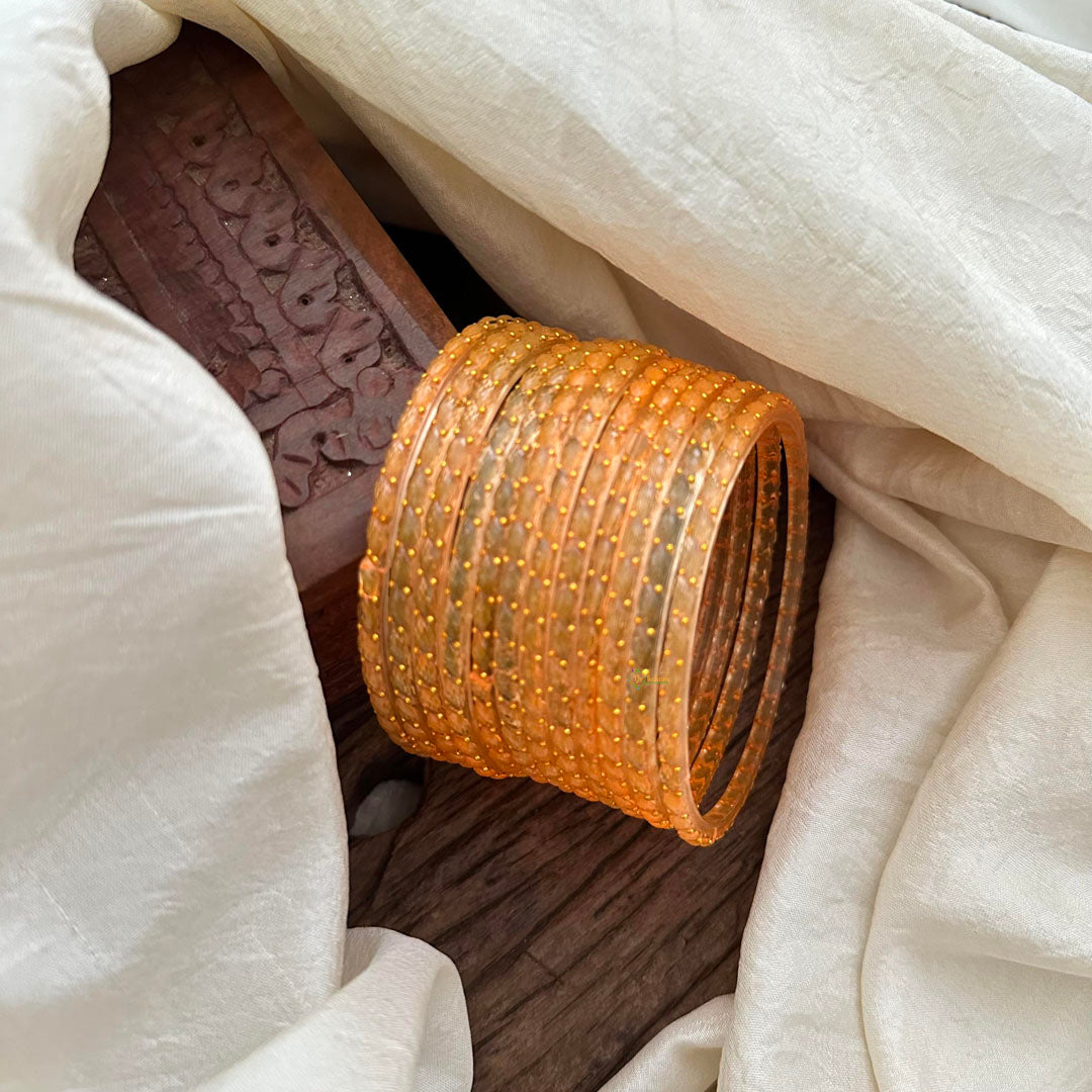 Light Orange Rain Drop Thin Glass Bangle-Set of 12-G13656