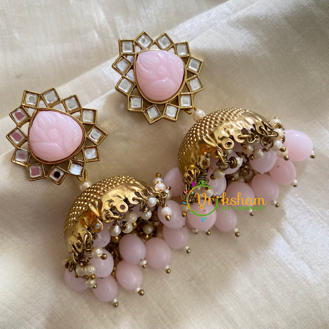 Light Pink Meenakari Jhumkas-Hand painted-Fancy Stone Stud with hand painted Jhumkas base. Bead and Pearl finish. Medium size.