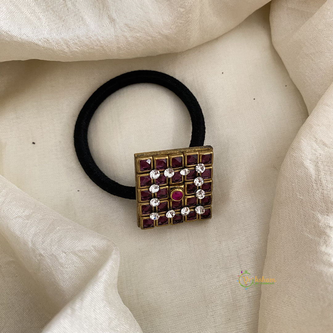 Light Pink & White Kundan Pendant Rubber Band- Diamond - semi precious stone -Festive Wear Hair bands-premium gold like polish pendant.