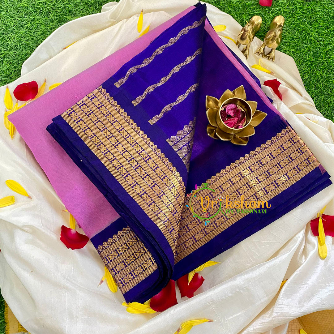 Lilac Korvai Handloom Silk Cotton Saree.- Festive wear saree –Plain Pattern throughout the saree; comes with Blouse attached. Two side contrast border and pallu.
